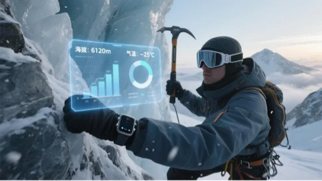 在实际户外运动领域中,登山爱好者可通过智能手表、手机、高度计等便携式电子设备中集成的数字气压传感器来测量气压,从而获取所处位置的海拔高度,并进一步得知所处位置的氧气含量下降幅度,可提前预防高原反应,实时合理地分配体力与规划路线。