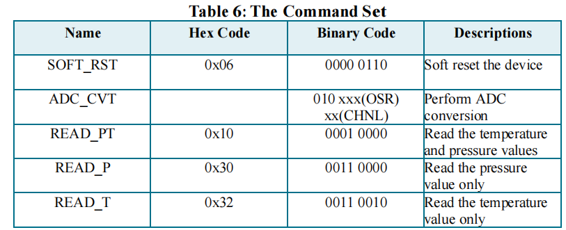 注:OSR值越高(如4096),ADC对原始信号的采样和平均次数越多,测量精度(分辨率)越高,但转换时间和功耗也会增加。(更多细节请官网查阅HPS700A产品规格书)。