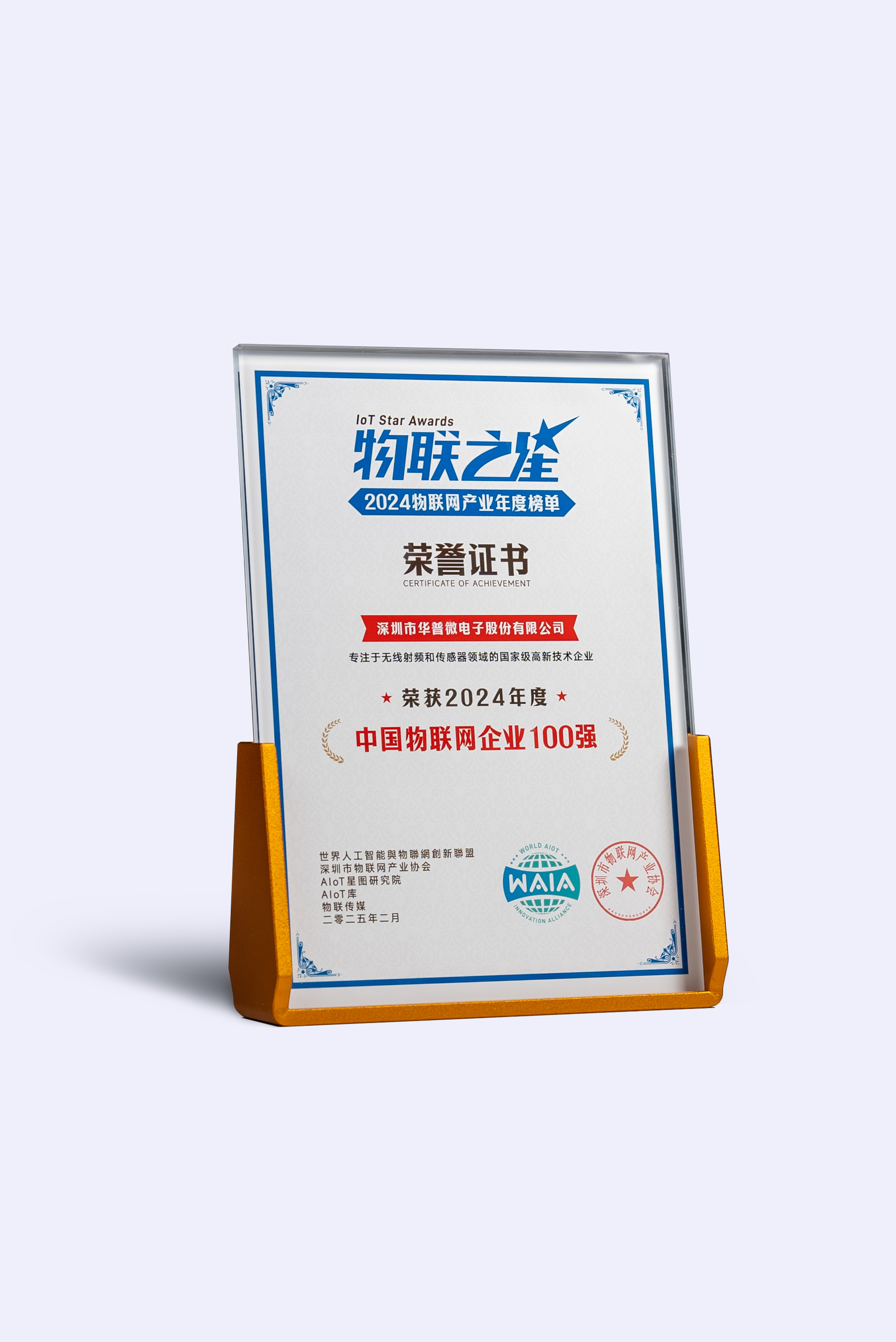 2025年6月17日,上海浦东喜来登由由大酒店,哈哈体育微受邀参加了由世界智联网创新联盟、深圳市物联网产业协会主办的“2025中国物联网企业出海与创新发展峰会暨‘2024物联之星’年度榜单颁奖典礼”,并一举荣获2024年度“中国物联网企业100强”荣誉证书。